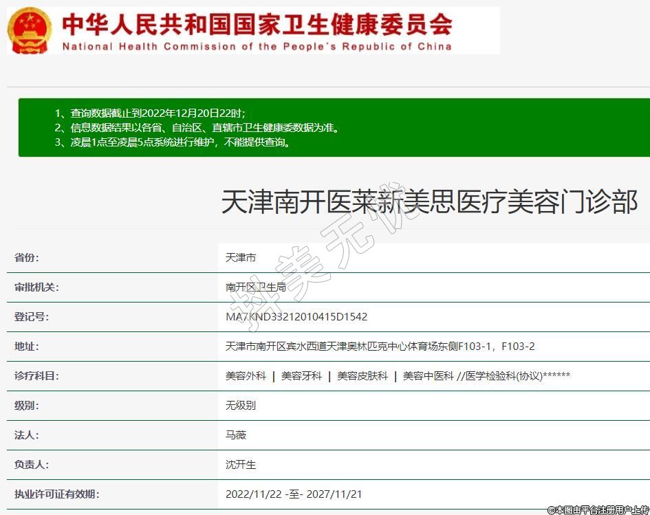 天津醫(yī)萊新美思醫(yī)療美容,診療科目:美容外科 | 美容牙科 | 美容皮膚科 | 美容中醫(yī)科 //醫(yī)學檢驗科(協議)******