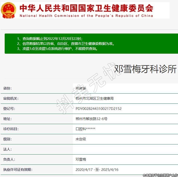 審批機關:郴州市北湖區(qū)衛(wèi)生健康局