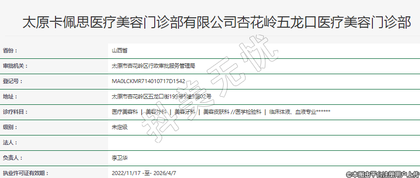 太原卡佩思醫(yī)療美容門診部有限公司杏花嶺五龍口醫(yī)療美容門診部