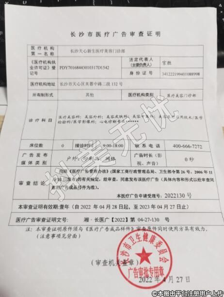 審批機關(guān):長沙市天心區(qū)衛(wèi)生健康局