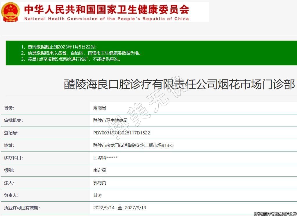 醴陵海良口腔診療有限責(zé)任公司煙花市場(chǎng)門診部