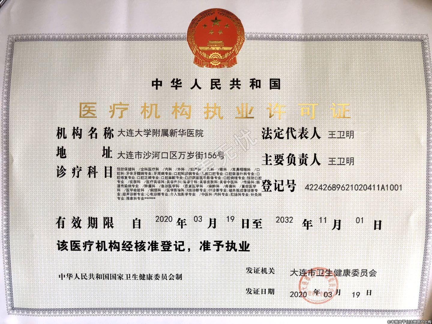 發(fā)證機(jī)關(guān):大連市衛(wèi)生健康委員會(huì)