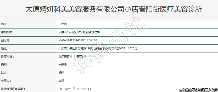 太原婧妍科美美容服務(wù)有限公司小店晉陽街醫(yī)療美容診所