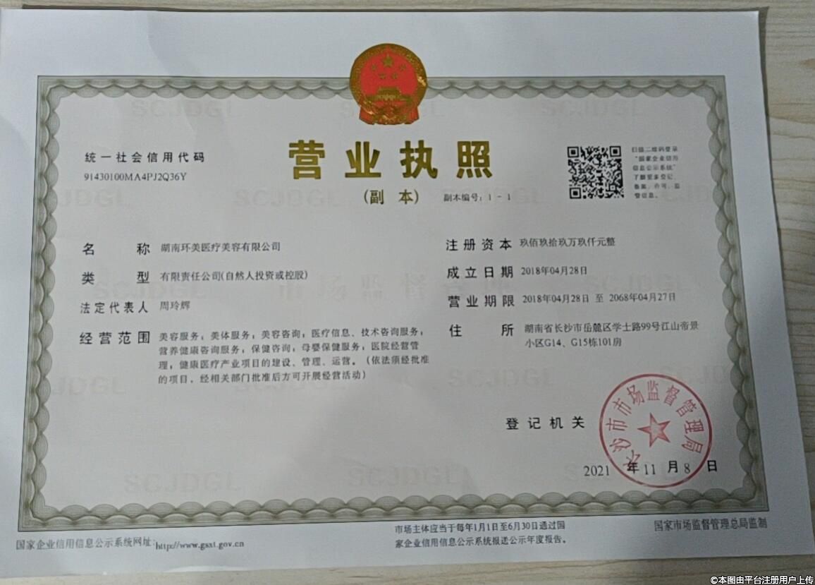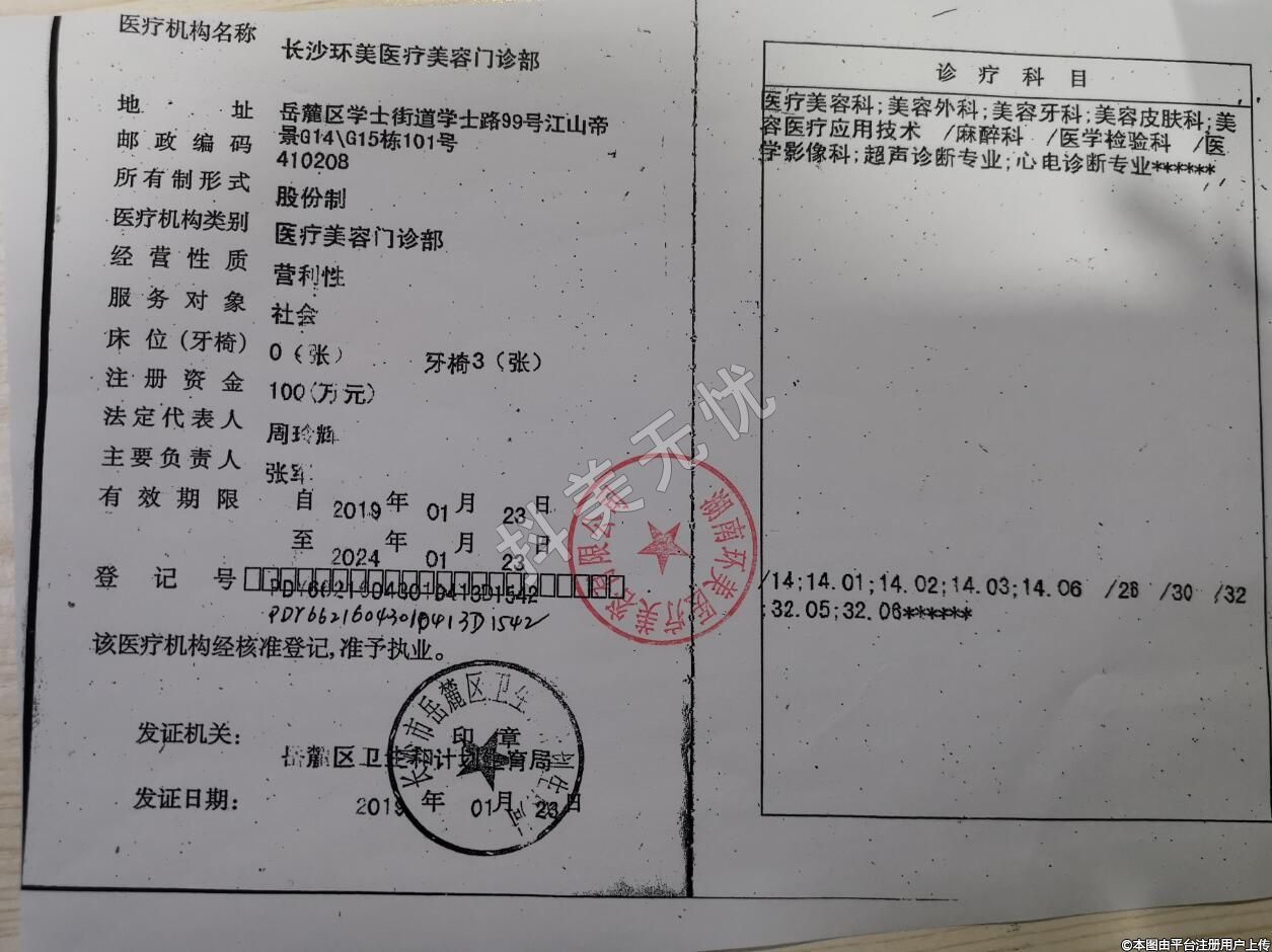 醫(yī)療機(jī)構(gòu)名稱:長(zhǎng)沙環(huán)美醫(yī)療美容門診部