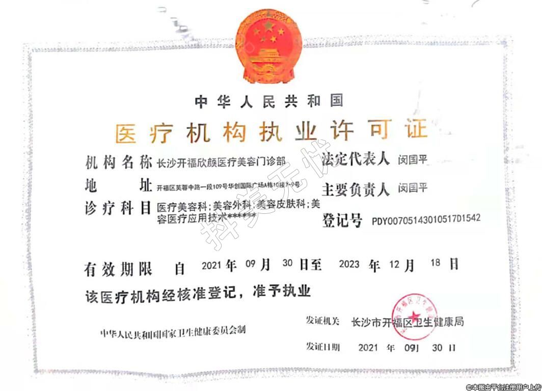 發(fā)證機關(guān):長沙市開福區(qū)衛(wèi)生健康局