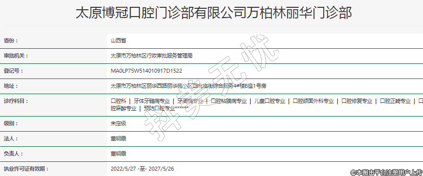 太原博冠口腔門診部有限公司萬柏林麗華門診部