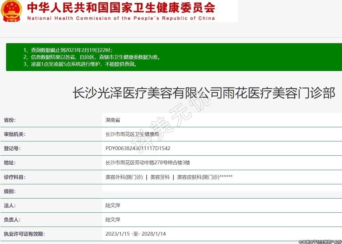 長(zhǎng)沙光澤醫(yī)療美容有限公司雨花醫(yī)療美容門診部