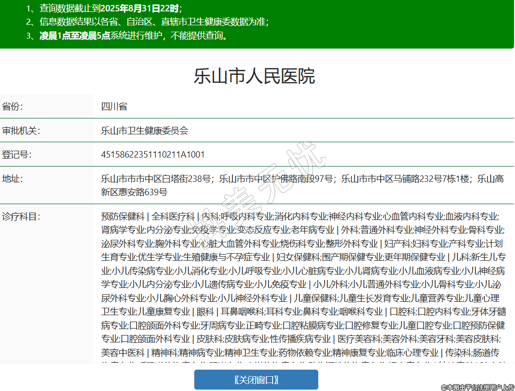 省份:四川省審批機(jī)關(guān):樂山市衛(wèi)生健康委員會(huì)登記號(hào):45158622351110211A1001地址:樂山市市市中區(qū)白塔街238號(hào);樂山市市中區(qū)護(hù)佛路南段97號(hào);樂山市市中區(qū)馬鋪路232號(hào)7棟1樓;樂山高新區(qū)惠安路639號(hào)診療科目:預(yù)防保健科 | 全科醫(yī)療科 | 內(nèi)科;呼吸內(nèi)科專業(yè);消化內(nèi)科專業(yè);神經(jīng)內(nèi)科專業(yè);心血管內(nèi)科專業(yè);血液內(nèi)科專業(yè);腎病學(xué)專業(yè);內(nèi)分泌專業(yè);免疫學(xué)專業(yè);變態(tài)反應(yīng)專業(yè);老年病專業(yè) | 外科;普通外科專業(yè);神經(jīng)外科專業(yè);骨科專業(yè);泌尿外科專業(yè);胸外科專業(yè);心臟大血管外科專業(yè);燒傷科專業(yè);整形外科專業(yè) | 婦產(chǎn)科;婦科專業(yè);產(chǎn)科專業(yè);計(jì)劃生育專業(yè);優(yōu)生學(xué)專業(yè);生殖健康與不孕癥專業(yè) | 婦女保健科;圍產(chǎn)期保健專業(yè);更年期保健專業(yè) | 兒科;新生兒專業(yè);小兒傳染病專業(yè);小兒消化專業(yè);小兒呼吸專業(yè);小兒心臟病專業(yè);小兒腎病專業(yè);小兒血液病專業(yè);小兒神經(jīng)病學(xué)專業(yè);小兒內(nèi)分泌專業(yè);小兒遺傳病專業(yè);小兒免疫專業(yè) | 小兒外科;小兒普通外科專業(yè);小兒骨科專業(yè);小兒泌尿外科專業(yè);小兒胸心外科專業(yè);小兒神經(jīng)外科專業(yè) | 兒童保健科;兒童生長(zhǎng)發(fā)育專業(yè);兒童營(yíng)養(yǎng)專業(yè);兒童心理衛(wèi)生專業(yè);兒童康復(fù)專業(yè) | 眼科 | 耳鼻咽喉科;耳科專業(yè);鼻科專業(yè);咽喉科專業(yè) | 口腔科;口腔內(nèi)科專業(yè);牙體牙髓病專業(yè);口腔頜面外科專業(yè);牙周病專業(yè);正畸專業(yè);口腔粘膜病專業(yè);口腔修復(fù)專業(yè);兒童口腔專業(yè);口腔預(yù)防保健專業(yè);口腔頜面外科專業(yè) | 皮膚科;皮膚病專業(yè);性傳播疾病專業(yè) | 醫(yī)療美容科;美容外科;美容牙科;美容皮膚科;美容中醫(yī)科 | 精神科;精神病專業(yè);精神衛(wèi)生專業(yè);藥物依賴專業(yè);精神康復(fù)專業(yè);臨床心理專業(yè) | 傳染科;腸道傳染病專業(yè);呼吸道傳染病專業(yè);肝炎專業(yè);蟲媒傳染病專業(yè);動(dòng)物源性傳染病專業(yè);蠕蟲病專業(yè) | 結(jié)核病科 | 腫瘤科 | 急診醫(yī)學(xué)科 | 康復(fù)醫(yī)學(xué)科 | 麻醉科 | 疼痛科 | 重癥醫(yī)學(xué)科 | 醫(yī)學(xué)檢驗(yàn)科;臨床體液、血液專業(yè);臨床微生物學(xué)專業(yè);臨床化學(xué)檢驗(yàn)專業(yè);臨床免疫、血清學(xué)專業(yè);臨床細(xì)胞分子遺傳學(xué)專業(yè) | 病理科 | 醫(yī)學(xué)影像科;X線診斷專業(yè);CT診斷專業(yè);磁共振成像診斷專業(yè);核醫(yī)學(xué)專業(yè);超聲診斷專業(yè);心電診斷專業(yè);腦電及腦血流圖診斷專業(yè);神經(jīng)肌肉電圖專業(yè);介入放射學(xué)專業(yè);放射治療專業(yè) | 中醫(yī)科;內(nèi)科專業(yè);外科專業(yè);婦產(chǎn)科專業(yè);兒科專業(yè);皮膚科專業(yè);眼科專業(yè);耳鼻咽喉科專業(yè);骨傷科專業(yè);肛腸科專業(yè);老年病科專業(yè);針灸科專業(yè);推拿科專業(yè);康復(fù)醫(yī)學(xué)專業(yè);預(yù)防保健科專業(yè) | 中西醫(yī)結(jié)合科******級(jí)別:三級(jí)法定代表人:曾國軍主要負(fù)責(zé)人:曾國軍執(zhí)業(yè)許可證有效期:2025/06/25 -至- 2040/02/27 -