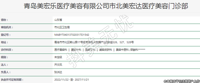 青島美宏樂(lè)醫(yī)療美容有限公司市北美宏達(dá)醫(yī)療美容門(mén)診部