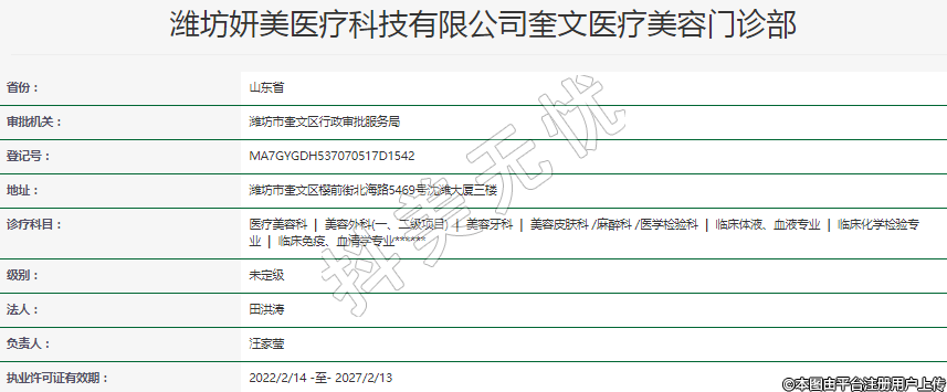 濰坊妍美醫(yī)療科技有限公司奎文醫(yī)療美容門診部