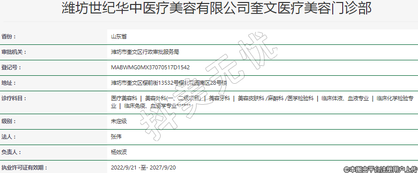 濰坊世紀(jì)華中醫(yī)療美容有限公司奎文醫(yī)療美容門(mén)診部