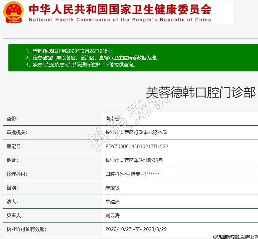 長沙德韓口腔(芙蓉)診療科目:口腔科(含種植專業(yè))******
