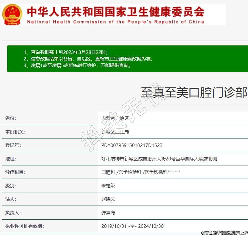 呼和浩特至美口腔(巨華酒店)診療科目:口腔科 /醫(yī)學檢驗科 /醫(yī)學影像科******