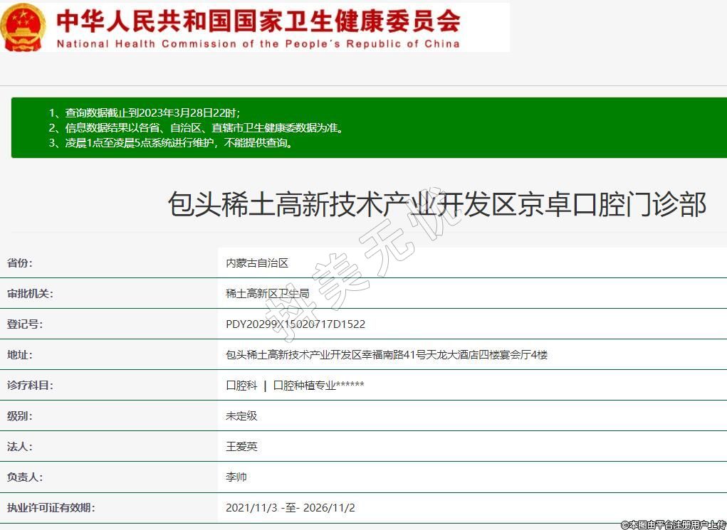 包頭稀土高新技術產(chǎn)業(yè)開發(fā)區(qū)京卓口腔門診部