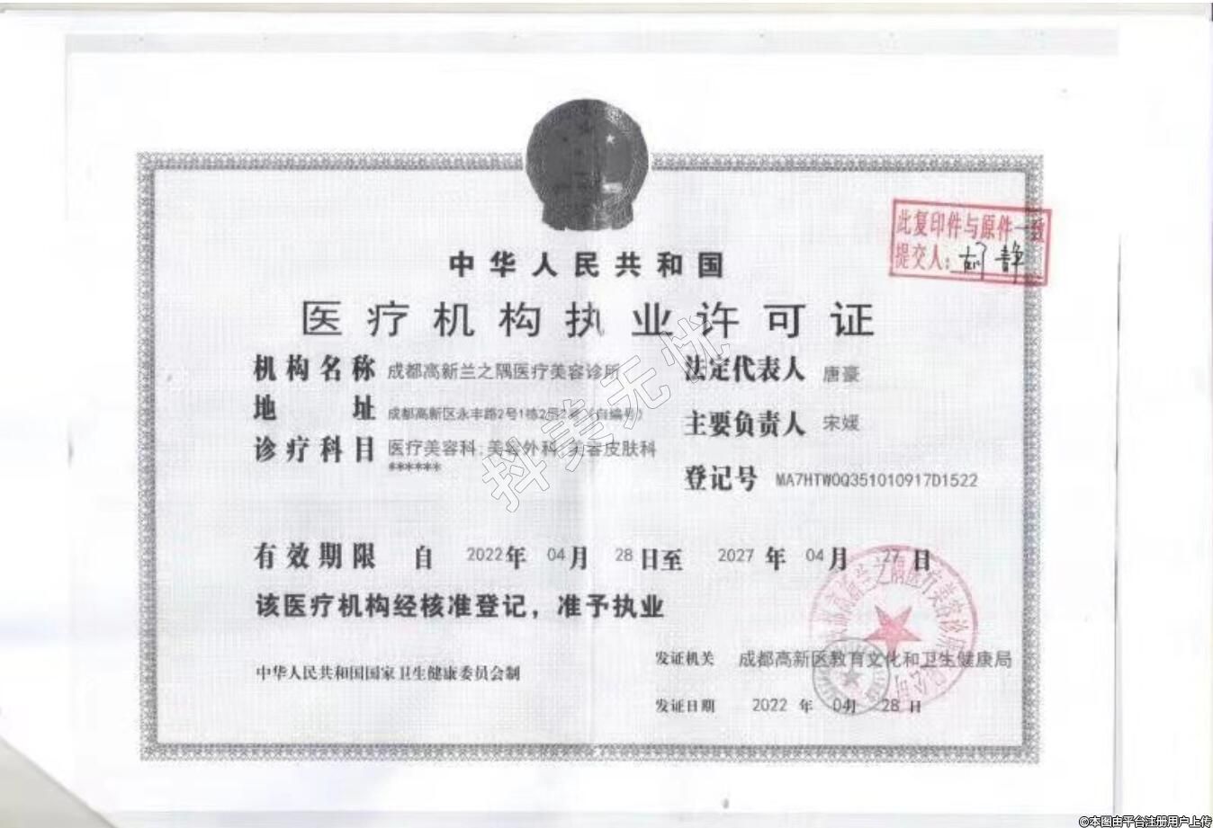 發(fā)證機(jī)關(guān):成都高新區(qū)教育文化和衛(wèi)生健康局