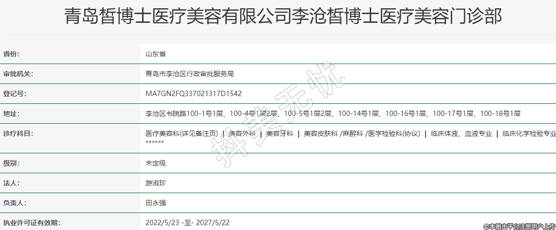 青島皙博士醫(yī)療美容有限公司李滄皙博士醫(yī)療美容門(mén)診部