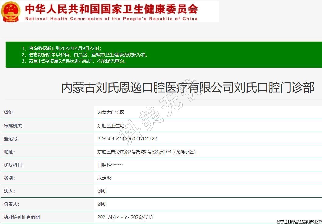 內蒙古劉氏恩逸口腔醫(yī)療有限公司劉氏口腔門診部