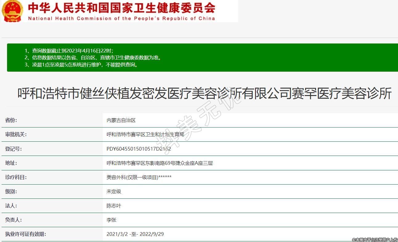 呼和浩特市健絲俠植發(fā)密發(fā)醫(yī)療美容診所有限公司賽罕醫(yī)療美容診所