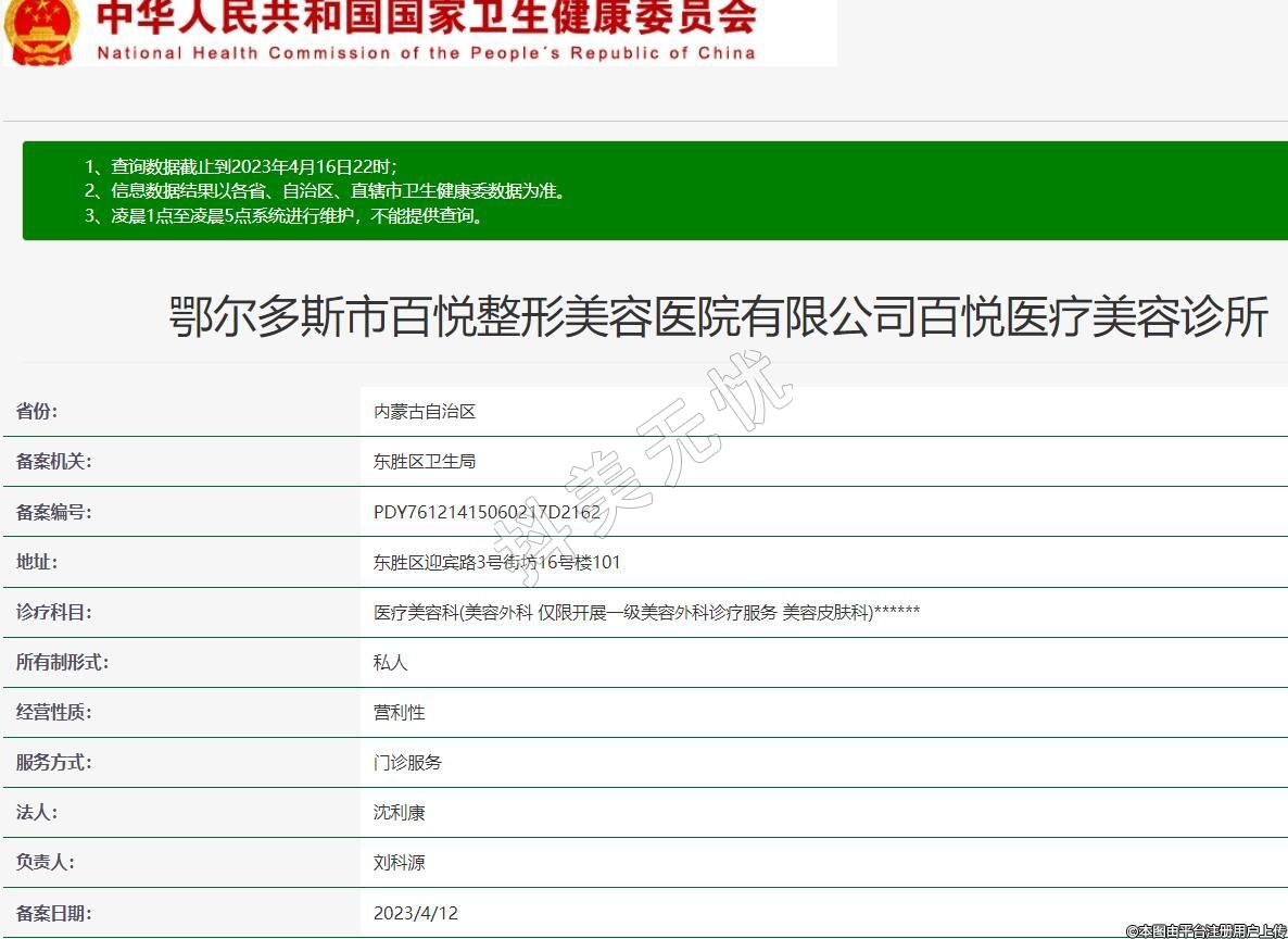 鄂爾多斯市百悅整形美容醫(yī)院有限公司百悅醫(yī)療美容診所