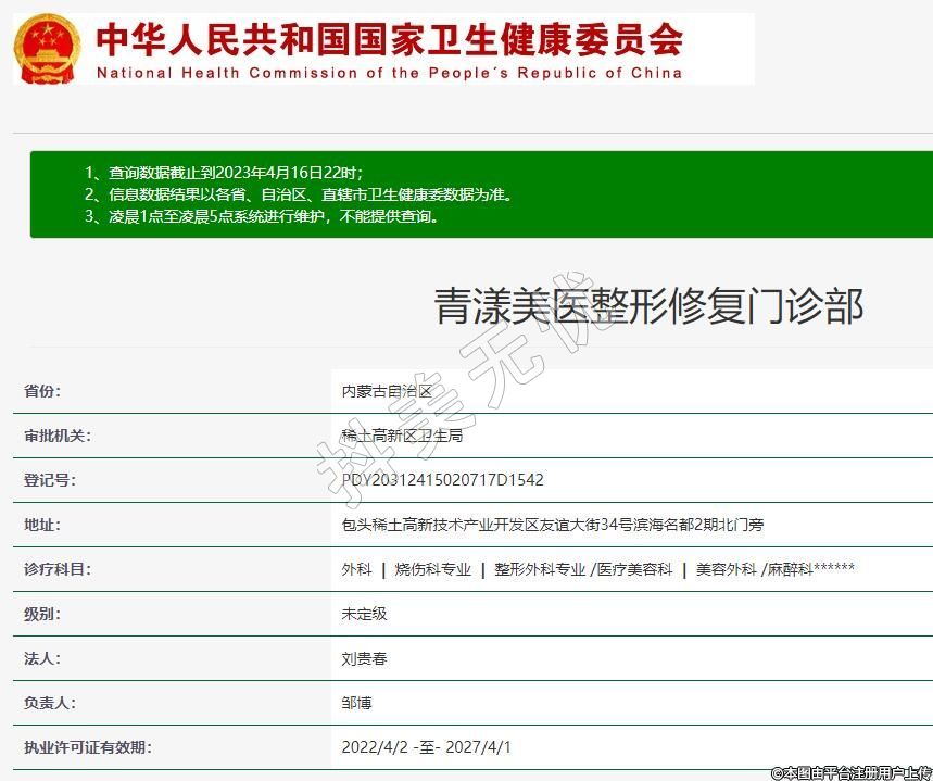 執(zhí)業(yè)許可證有效期:2022/4/2 -至- 2027/4/1