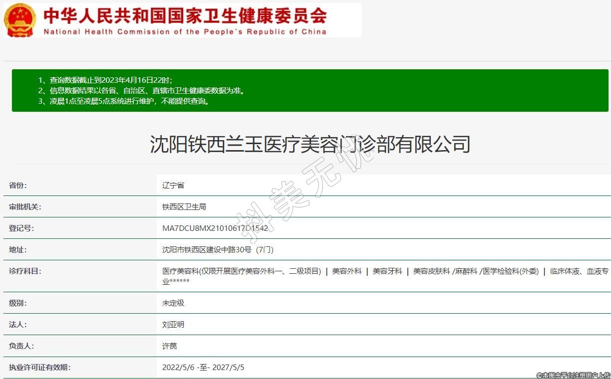 沈陽鐵西蘭玉醫(yī)療美容門診部有限公司