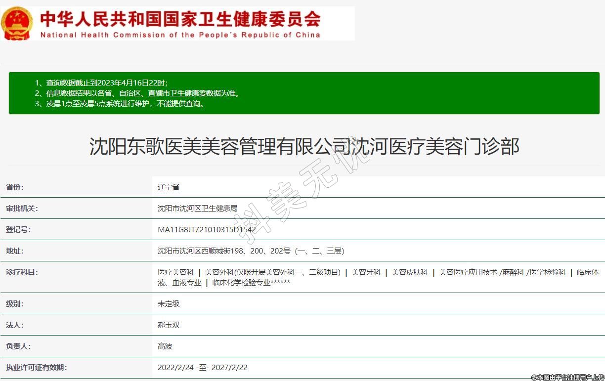 沈陽東歌醫(yī)美美容管理有限公司沈河醫(yī)療美容門診部