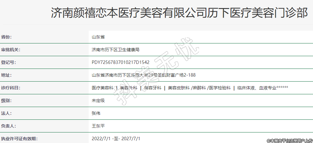 濟南顏禧戀本醫(yī)療美容有限公司歷下醫(yī)療美容門診部