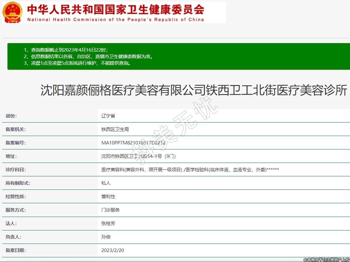 沈陽嘉顏儷格醫(yī)療美容有限公司鐵西衛(wèi)工北街醫(yī)療美容診所