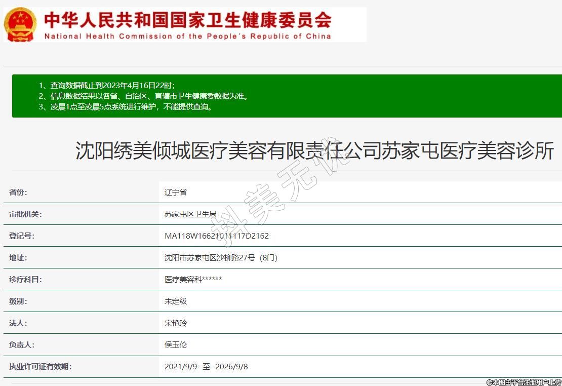 沈陽繡美傾城醫(yī)療美容有限責(zé)任公司蘇家屯醫(yī)療美容診所