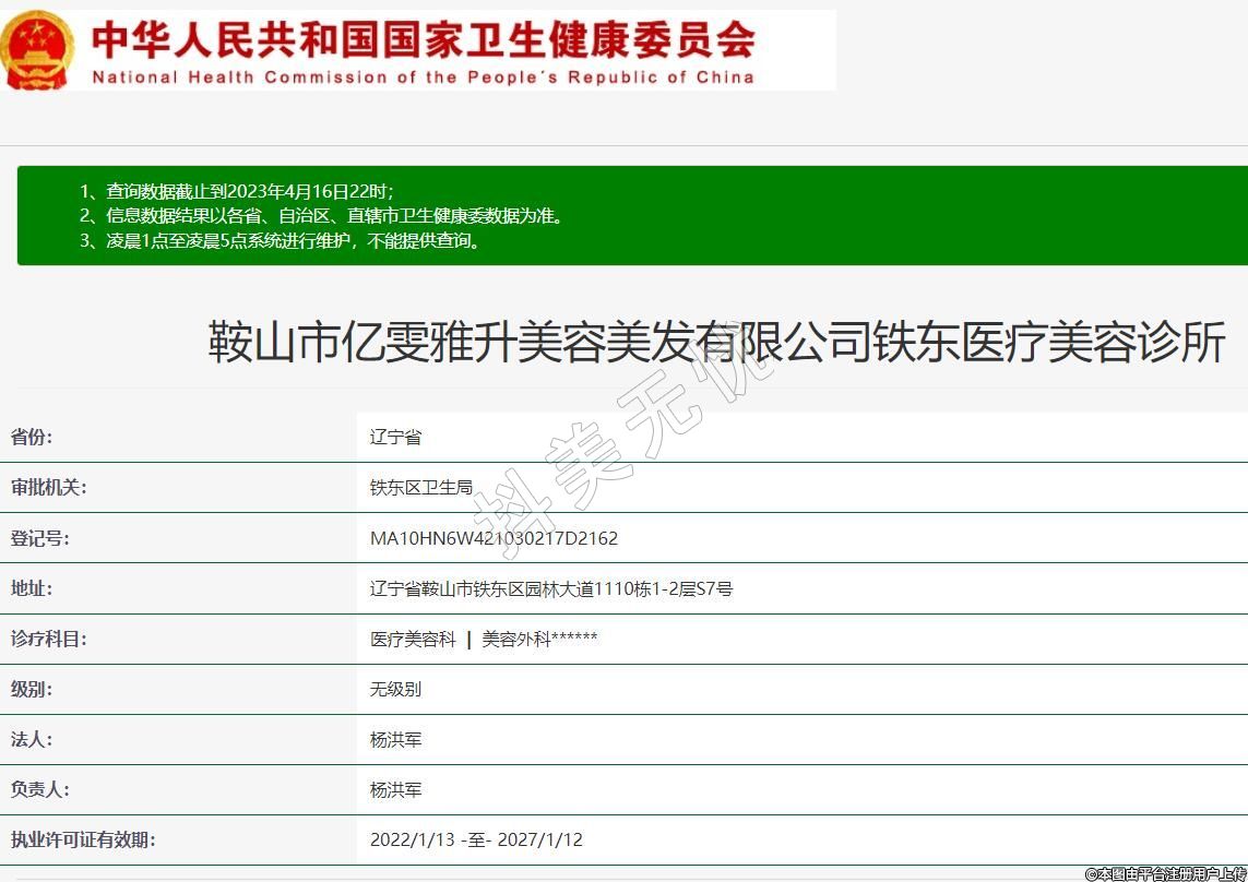 鞍山市億雯雅升美容美發(fā)有限公司鐵東醫(yī)療美容診所