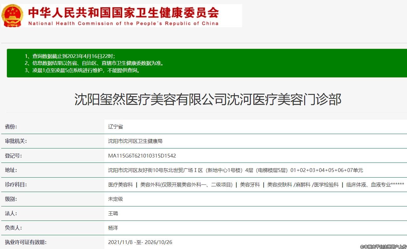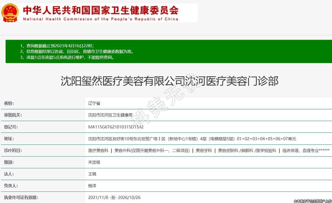 審批機關:沈陽市沈河區(qū)衛(wèi)生健康局