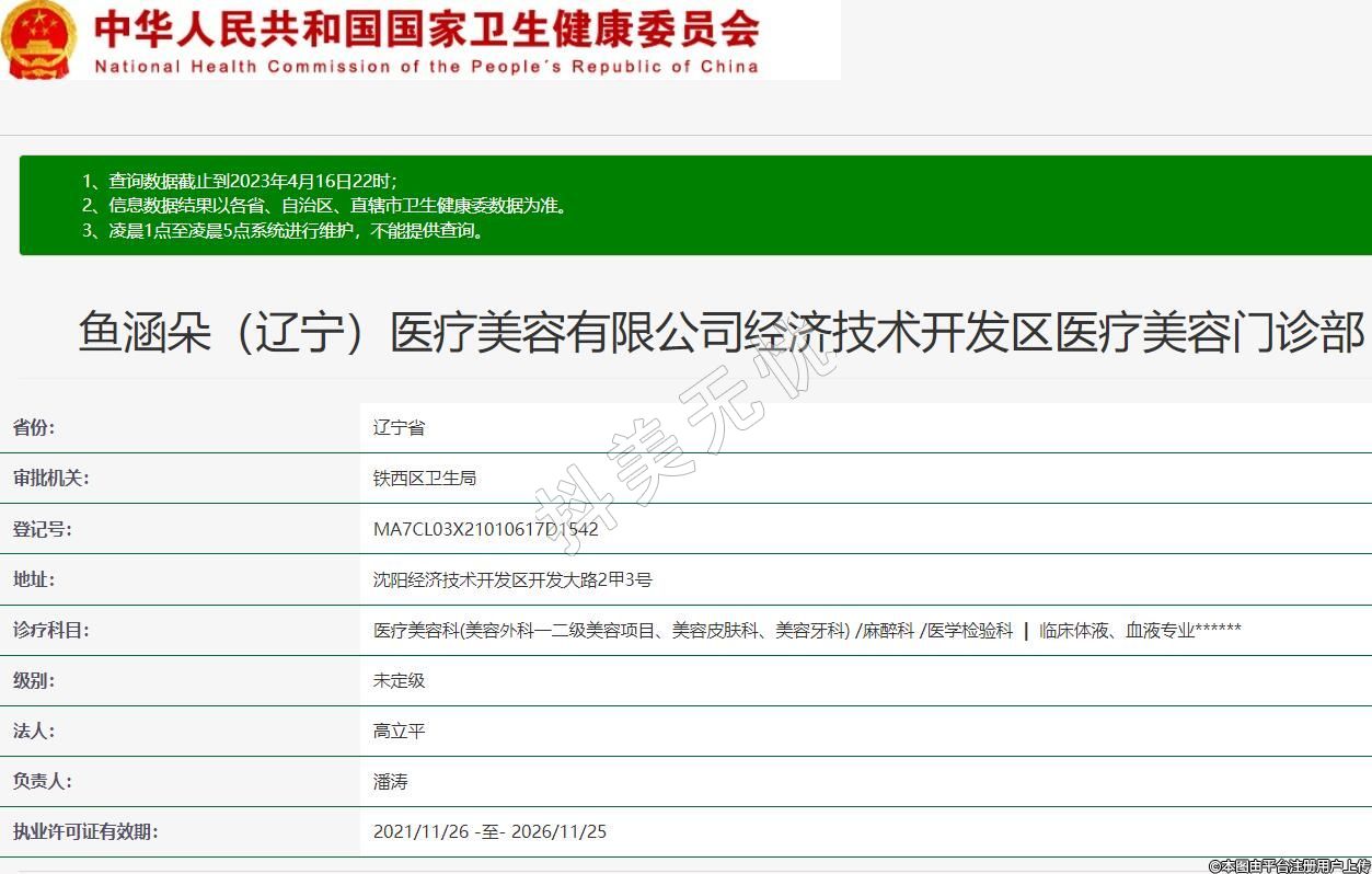 魚涵朵(遼寧)醫(yī)療美容有限公司經(jīng)濟(jì)技術(shù)開發(fā)區(qū)醫(yī)療美容門診部