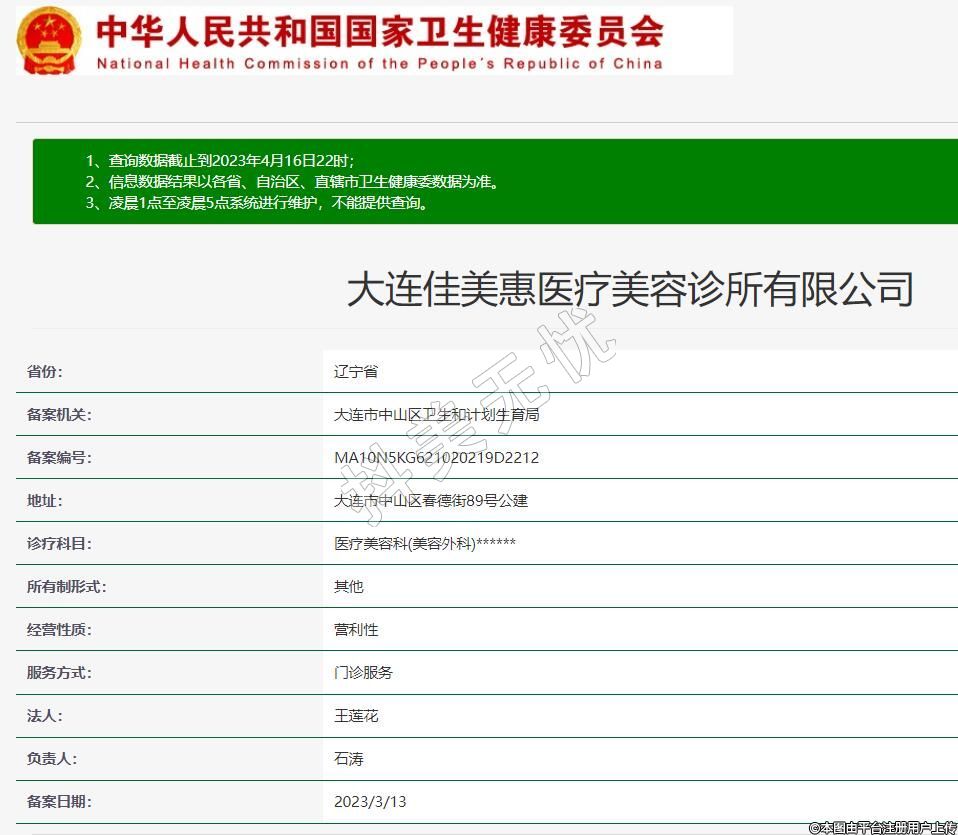 備案機(jī)關(guān):大連市中山區(qū)衛(wèi)生和計(jì)劃生育局