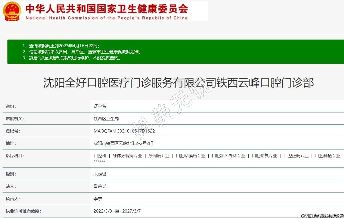 沈陽(yáng)全好口腔醫(yī)療門(mén)診服務(wù)有限公司鐵西云峰口腔門(mén)診部