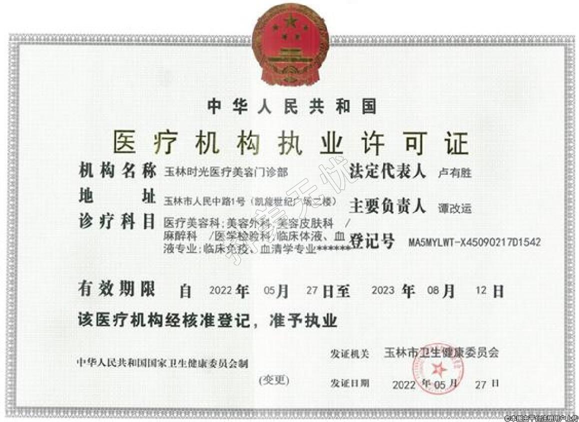 機構(gòu)名稱:玉林時光醫(yī)療美容門診部