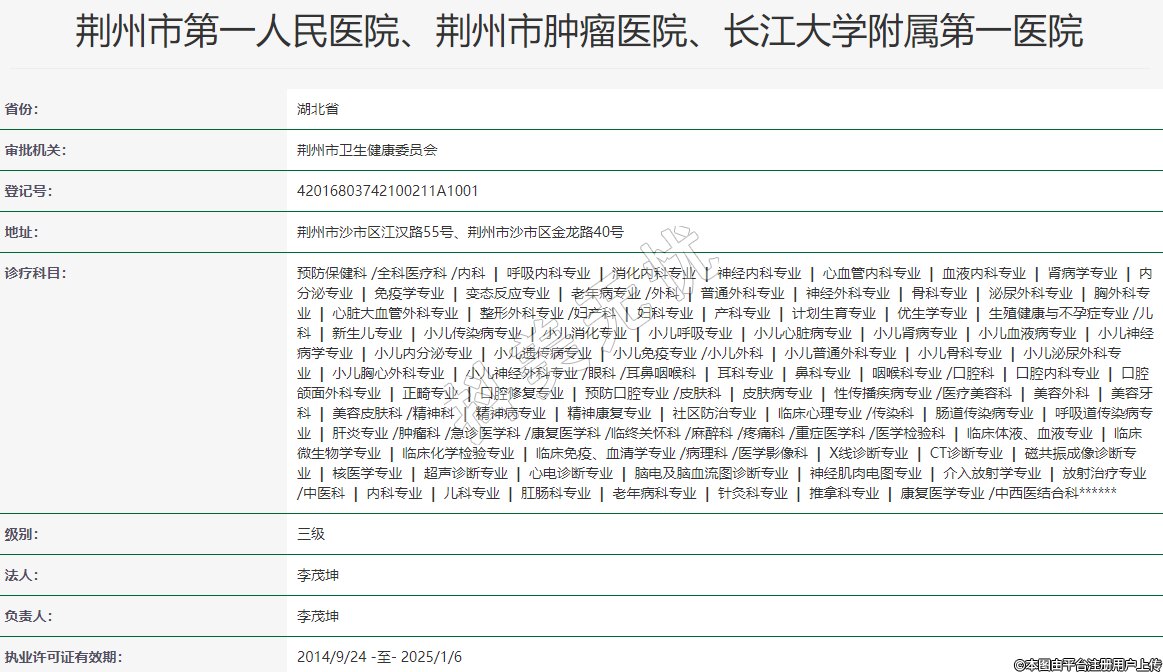 荊州市第一人民醫(yī)院、荊州市腫瘤醫(yī)院、長江大學(xué)附屬第一醫(yī)院