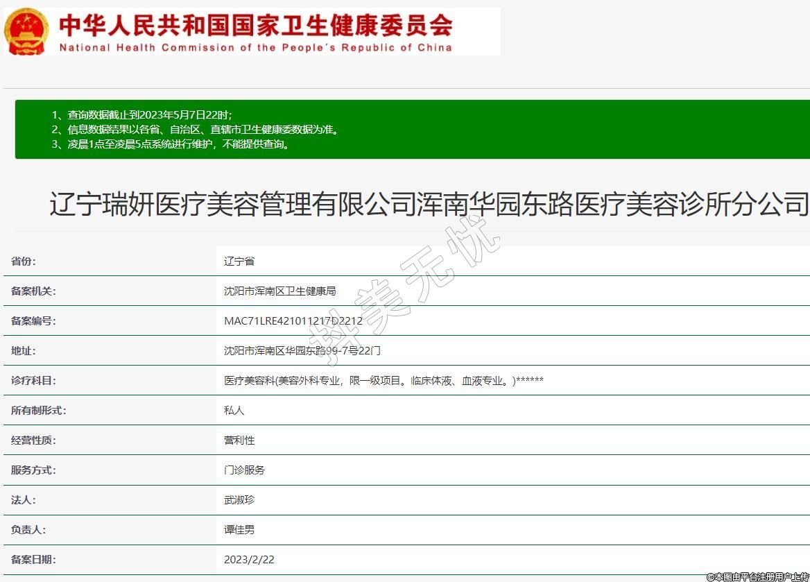 遼寧瑞妍醫(yī)療美容管理有限公司渾南華園東路醫(yī)療美容診所分公司