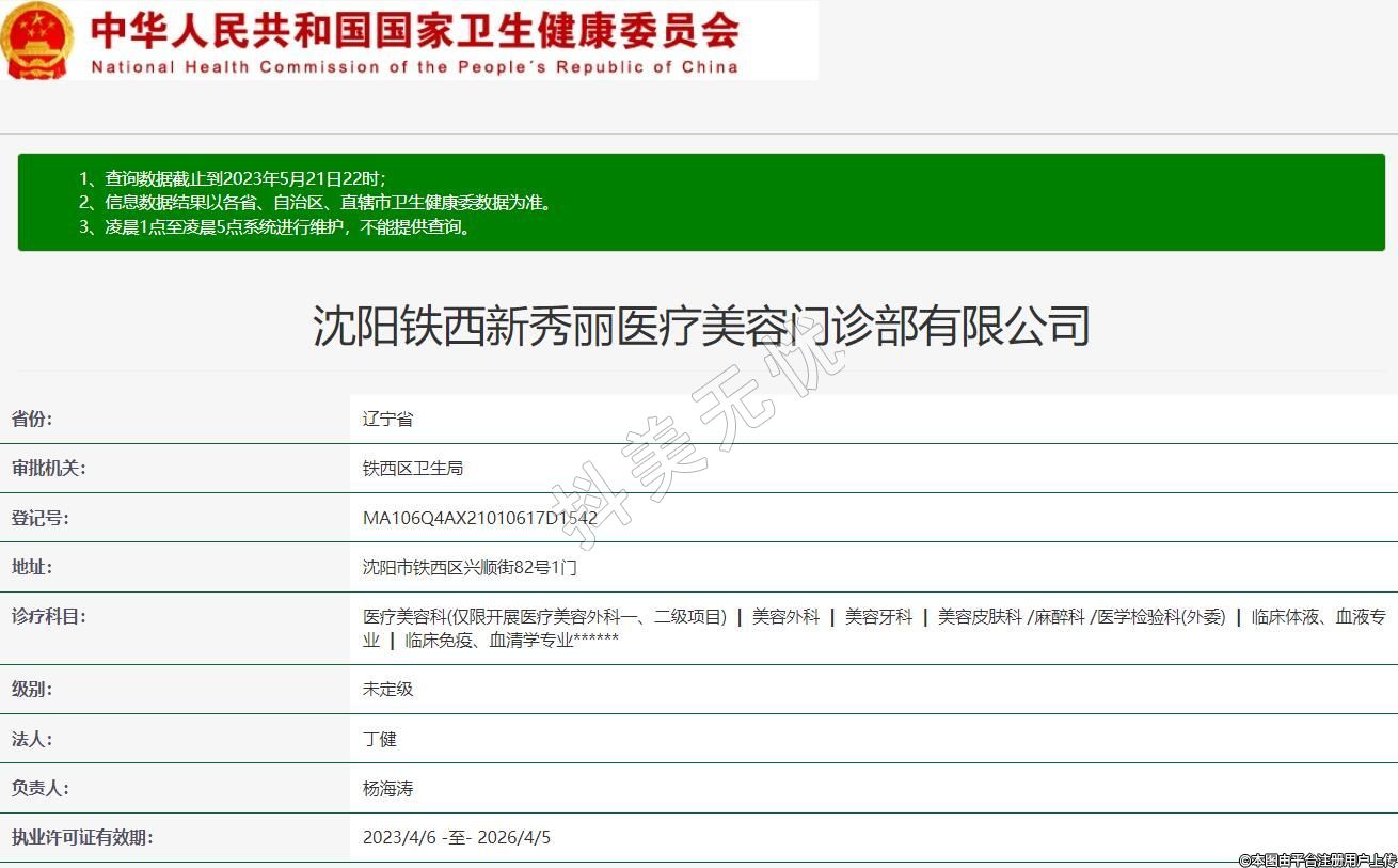 沈陽鐵西新秀麗醫(yī)療美容門診部有限公司