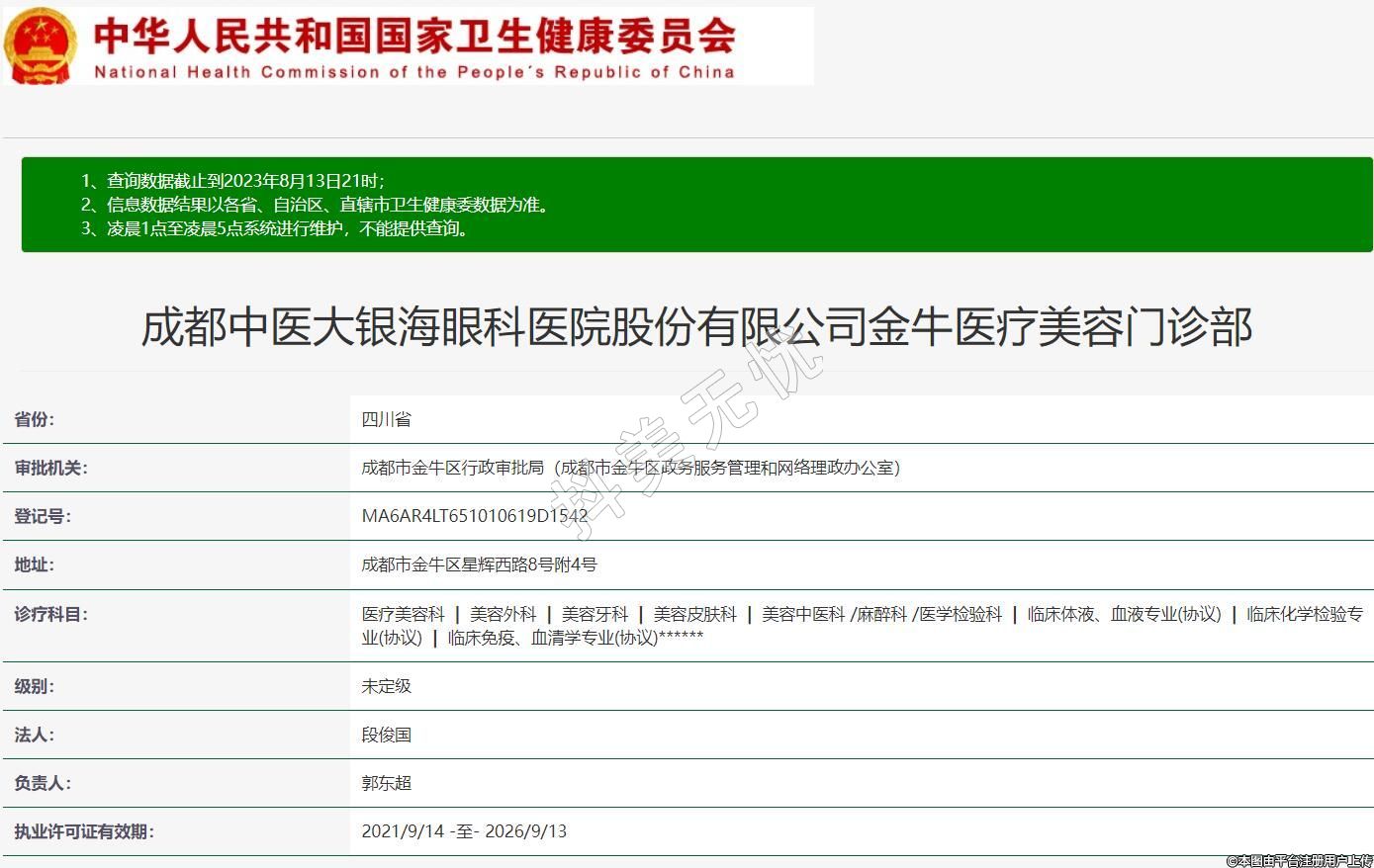 成都中醫(yī)大銀海眼科醫(yī)院股份有限公司金牛醫(yī)療美容門診部