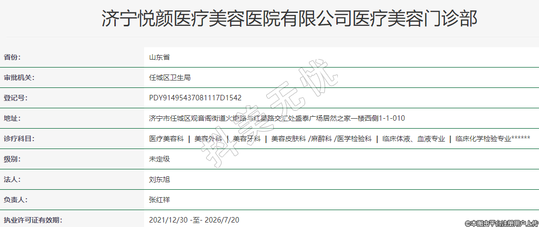 濟寧悅顏醫(yī)療美容醫(yī)院有限公司醫(yī)療美容門診部