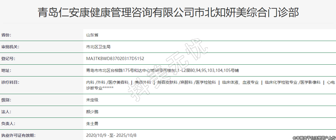 青島仁安康健康管理咨詢有限公司市北知妍美綜合門診部