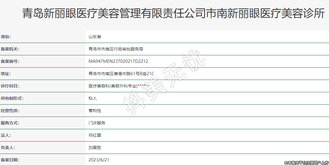 青島新麗眼醫(yī)療美容管理有限責任公司市南新麗眼醫(yī)療美容診所