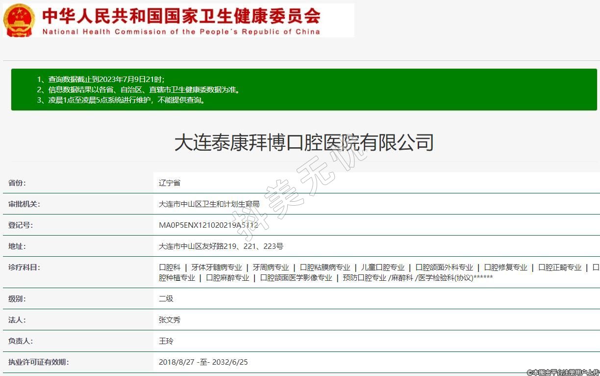審批機關(guān):大連市中山區(qū)衛(wèi)生和計劃生育局