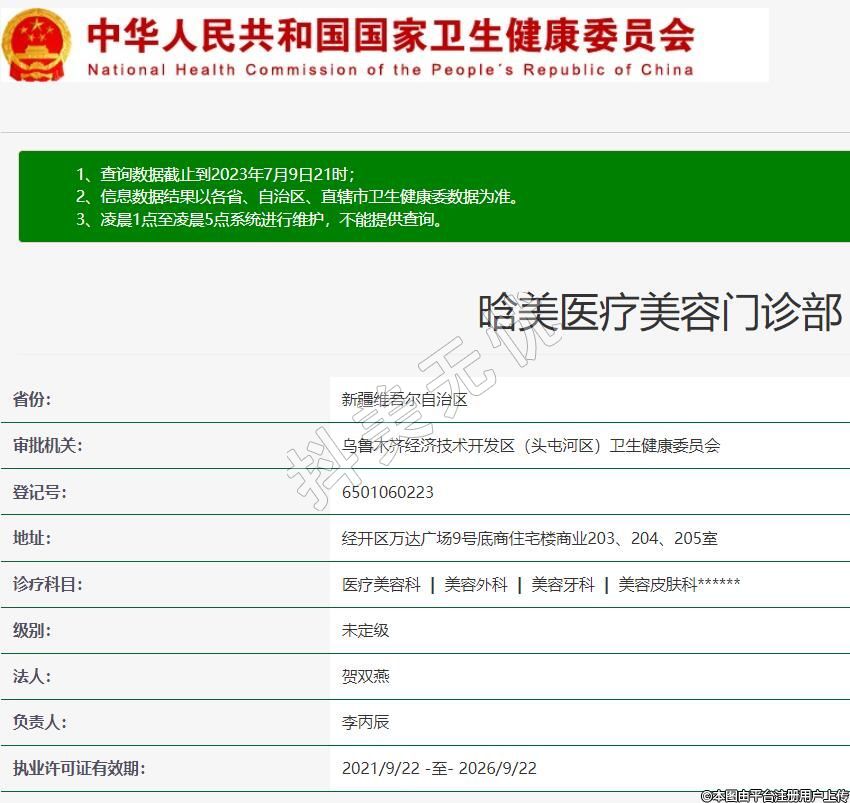 新疆晗美醫(yī)療美容門診部,位于烏魯木齊經(jīng)濟技術開發(fā)區(qū)(頭屯河區(qū))澎湖路88號烏魯木齊經(jīng)開萬達廣場9號底商住宅樓商業(yè)203、204、205室,于2021年成立。門診設有整形外科、美容皮膚科、口腔科等科室。