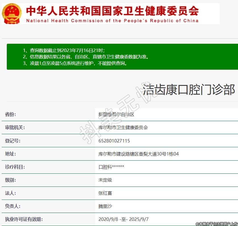 庫(kù)爾勒潔齒康口腔,診療科目:口腔科******