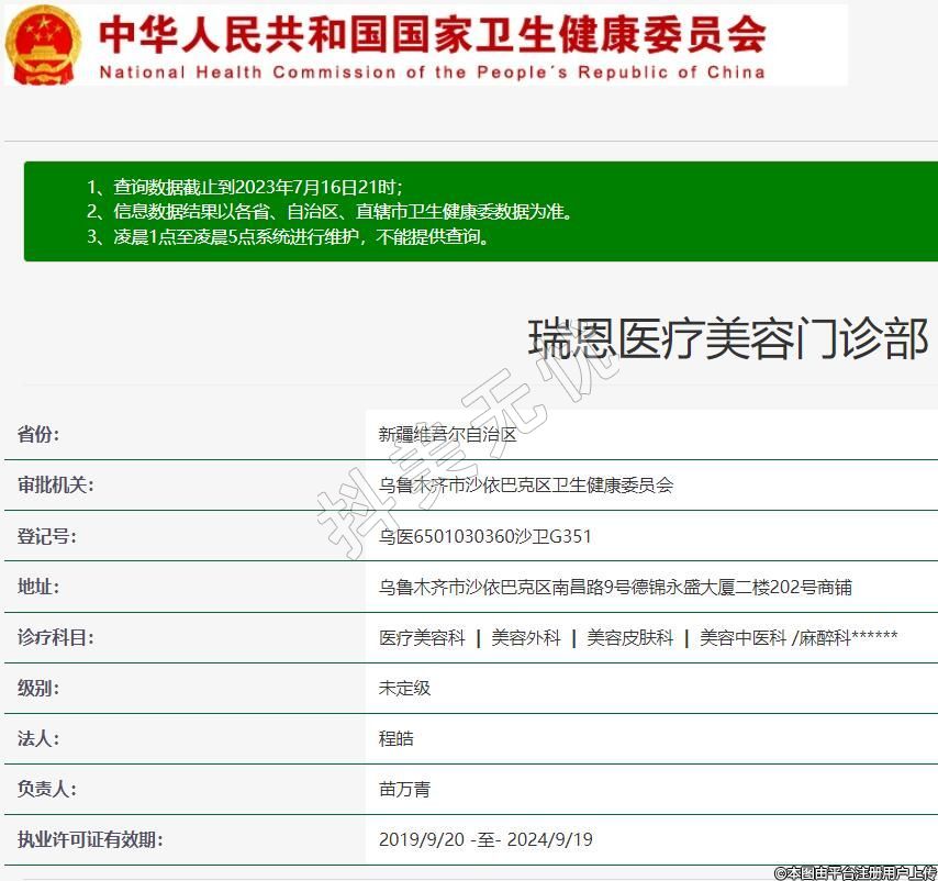 烏魯木齊瑞恩醫(yī)療美容,診療科目:醫(yī)療美容科 | 美容外科 | 美容皮膚科 | 美容中醫(yī)科 /麻醉科******