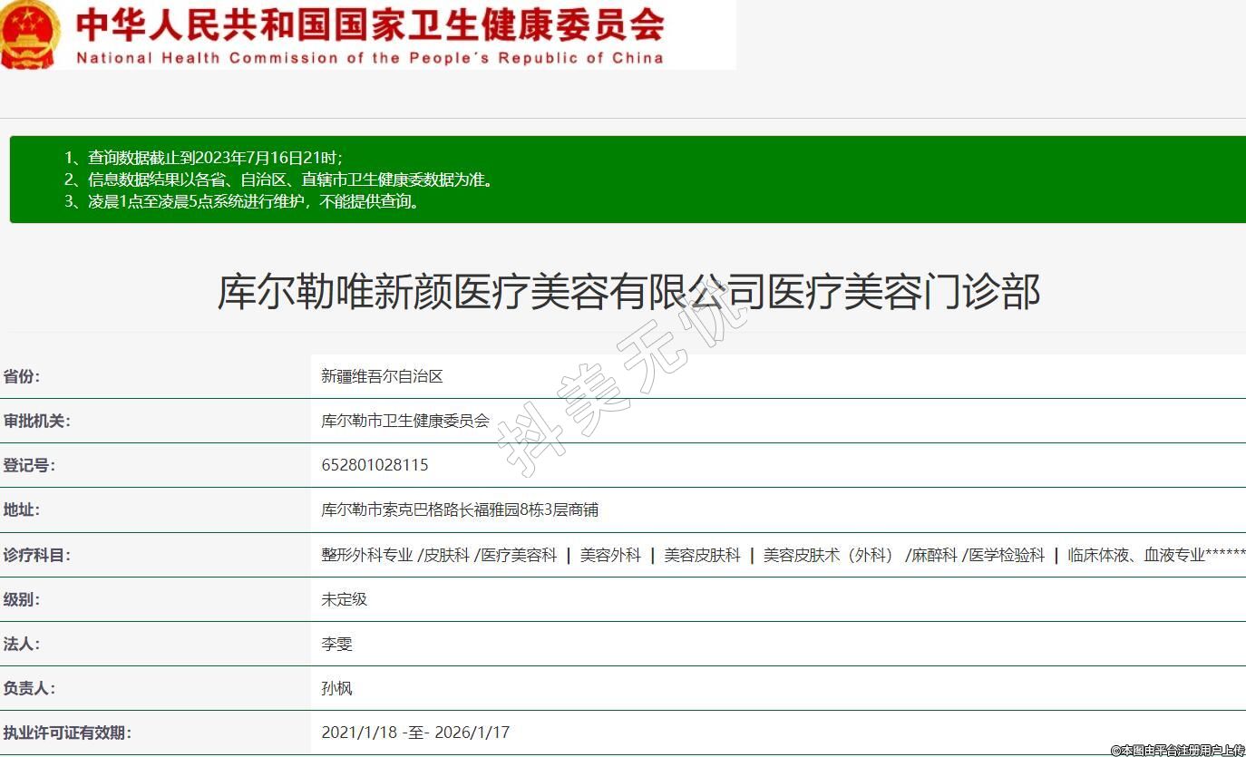 庫爾勒唯新顏醫(yī)療美容有限公司醫(yī)療美容門診部