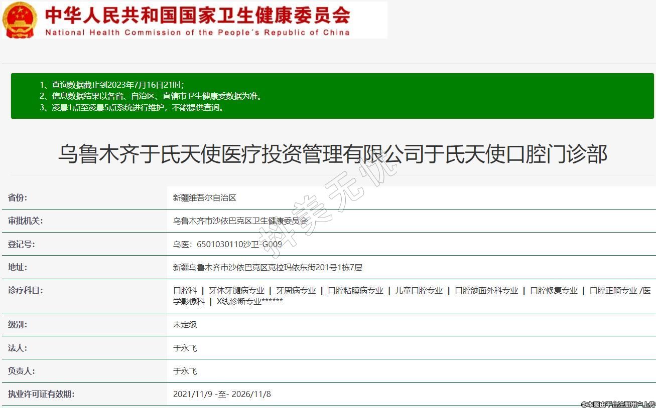 烏魯木齊于氏天使醫(yī)療投資管理有限公司于氏天使口腔門診部