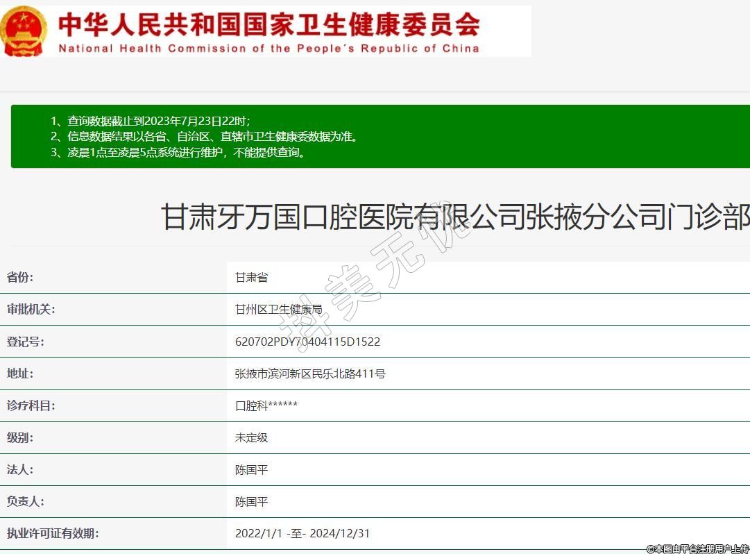 甘肅牙萬(wàn)國(guó)口腔醫(yī)院有限公司張掖分公司門診部