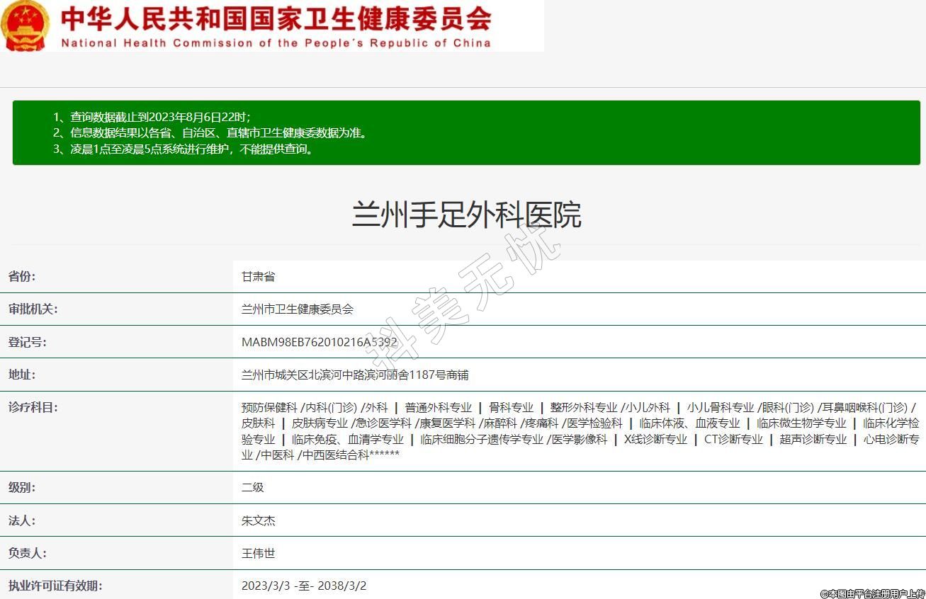 執(zhí)業(yè)許可證有效期:2023/3/3 -至- 2038/3/2